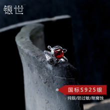 银世┋s925纯银2017新款复古石榴石灵狐开口翡翠简约戒指创意指环