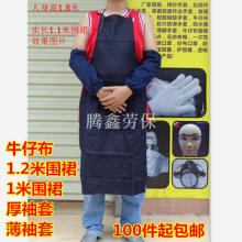 牛仔布 围裙袖套劳保工作作业饭馆厨房围裙耐磨耐脏100件起包邮