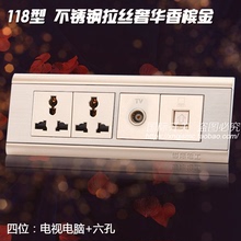 正品118型开关插座面板 不锈钢拉丝香槟金 四位 电视电脑+10孔