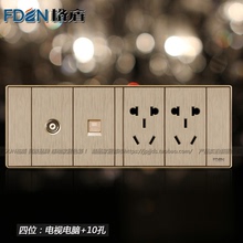 FDUN格盾118型开关插座 拉丝香槟金 四位电视电脑10孔插座 包邮
