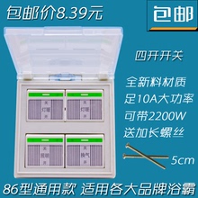 新料大功率足10A浴霸四开开关奥普通用4开86型带盖四联透明 包邮