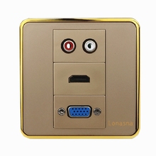 Lonasna香槟金多媒体组装面板 免焊接VGA音视频莲花HDMI高清插座