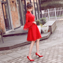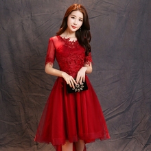 2017春季新款酒红色立领新娘敬酒服短款小礼服复古结婚显瘦连衣裙