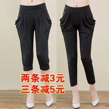 夏季薄款胖MM高腰显瘦哈伦裤女 宽松休闲九分裤 大码七分小脚裤女