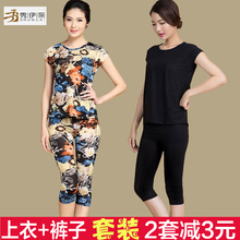 上衣+裤子中老年女装套装妈妈装夏装40-50-60大码中年印花两件套