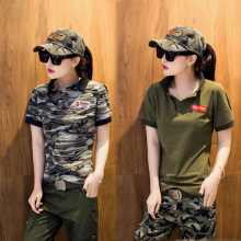 军绿迷彩翻领短袖t恤衫 女夏 2017户外休闲女士t恤女装 短袖衫女