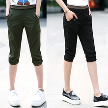 女式七分裤夏季薄款松紧腰休闲裤宽松运动学生纯棉中裤显瘦7分裤