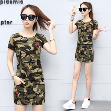 迷彩套装女夏2017新款韩版修身显瘦百搭夏季短袖短裤裙休闲两件套