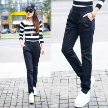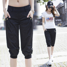 2017春夏季新款大码休闲裤女修身显瘦松紧腰哈伦裤纯色运动登山裤