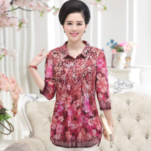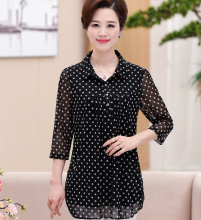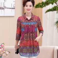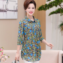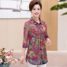 妈妈装春装七分袖衬衫新款中年人雪纺衫上衣服中老年女装时尚衬衣