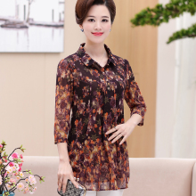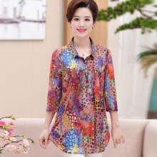 妈妈装春装中长款花色衬衫大码中老年女装雪纺衫夏装薄t恤女上衣