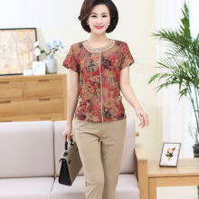 雅欧绒新款中老年女装夏天套装妈妈装休闲九分裤两件套妈妈装衣服