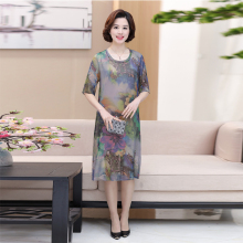 雅欧绒连衣裙夏季女装中长款宽松2017复古裙直筒直身中年妈妈夏装