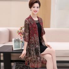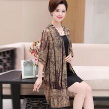 中年妈妈装薄开衫大码外搭中老年女雪纺外套花色披肩防晒衣两件套
