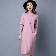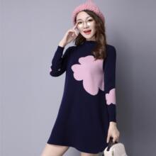 大码女装胖mm秋装中长款连衣裙加肥加大宽松显瘦修身针织衫毛衣裙