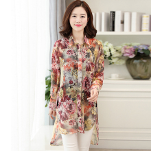 2017春装新款打底衫大码印花雪纺衫中长款上衣妈妈装宽松衬衫夏