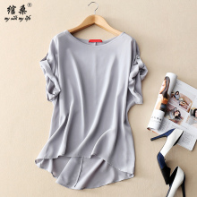 蝙蝠袖大码宽松重磅衬衣真丝T恤圆领短袖上衣 女 夏100桑蚕丝衬衫