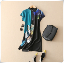 绾桑2017夏季新款女翻领短袖真丝连衣裙桑蚕丝中长裙宽松大码印花