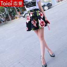 态爱2016新款印花百褶半身裙夏季女短裙学生韩版休闲时尚A蓬蓬裙