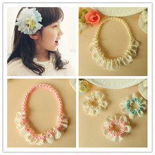 Z522波浪花边高档蕾丝珍珠项链手链儿童成人首饰品毛衣链宝宝头绳