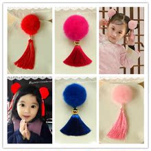 G22獭兔毛球流苏吊坠发夹胸针旗袍复古装古典宝宝婴儿童头饰发饰