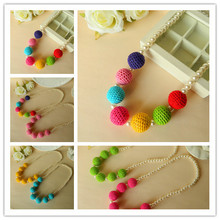Z009儿童成人彩色珠糖果色毛衣链项链彩虹珠毛线球头花手工