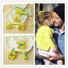 DJ63嫩黄果绿边发箍头箍发带发夹子宝宝婴儿童发饰品小七同款皮筋