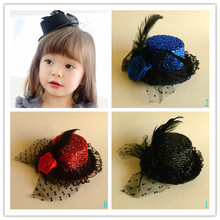 F25儿童大人发饰羽毛花朵鸭嘴夹子亮丝蕾丝小礼帽子发夹头饰舞蹈