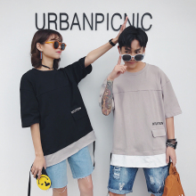 情侣装2017夏季新款韩版宽松字母印花学生BF拼接短袖T恤女班服潮