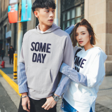 2017春装新款韩版情侣装字母刺绣拼接撞色拼接宽松情侣卫衣外套潮