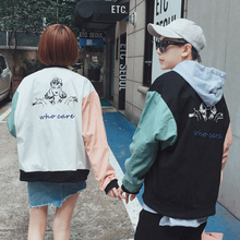 2017春季新款韩版宽松立领棒球衫学生拼接夹克情侣装字母刺绣外套