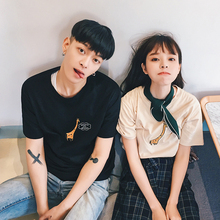 情侣装2017夏季新款韩版卡通刺绣情侣T恤衫学生宽松短袖女上衣潮