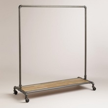 欧式复古服装店装修铁艺实木衣服架子展示架落地式带轮子水管衣架
