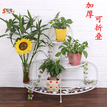 田园花架子室内多层铁艺阳台落地式折叠客厅半圆形阶梯绿萝花盆架