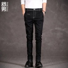 春夏款青年时尚潮流男装黑色弹力修身休闲裤男士韩版修身小脚裤子