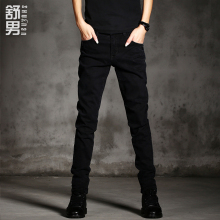 2017春夏款青年男装黑色弹力修身显瘦休闲牛仔裤男士韩版小脚裤子