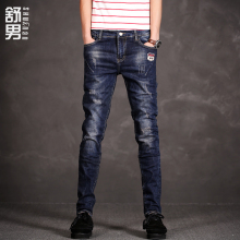 2017春夏款青春流行松紧腰哈伦牛仔裤男士韩版修身小脚直脚裤子潮