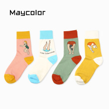 4双包邮 复古文艺抽象油画系列圣母图丘比特男士纯棉中筒袜子 潮