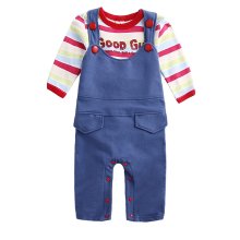 2017春秋季儿童纯棉套装男女宝宝可爱背带裤哈衣两件套宝宝连体服