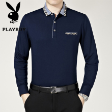 花花公子秋季新款长袖T恤男翻领纯色商务休闲爸爸中年男装体恤