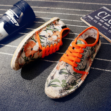 夏季潮鞋2017新款韩版情侣休闲鞋透气亚麻布鞋草编帆布鞋渔夫鞋男