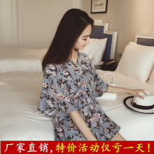 2017夏装新款韩版女士百搭上衣系带碎花短袖衬衫印花喇叭袖雪纺衫