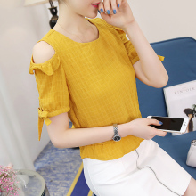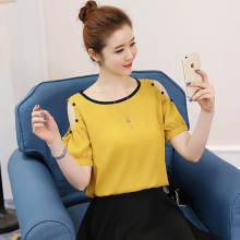 2017夏装新款女装韩版时尚漏肩上衣女士夏季雪纺衫短袖修身小衫潮
