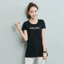2017春夏季新款韩版短袖女t恤上衣女装纯棉中长款打底衫时尚字母