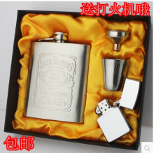 激光刻字德国亚光拉丝加厚304不锈钢酒壶7盎司户外随身便携礼盒装