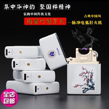 正品青花瓷电弧脉冲打火机usb充电打火机超薄防风电子点烟器