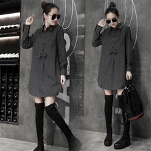 春季长袖衬衣加大码女装胖mm200斤宽松显瘦中长款打底衬衫娃娃裙