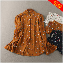包邮!春夏宽松上衣长袖民族风范单排扣薄款衬衫女D@7-3-070