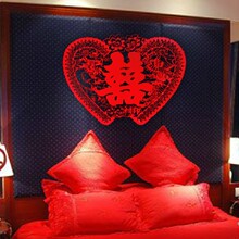 结婚庆用品 绒布 婚房装饰床头贴纸 无纺布压床喜字窗花剪纸