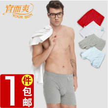3条装 宜而爽男中高腰纯棉透气平角裤平脚全棉内裤本命年大红四角